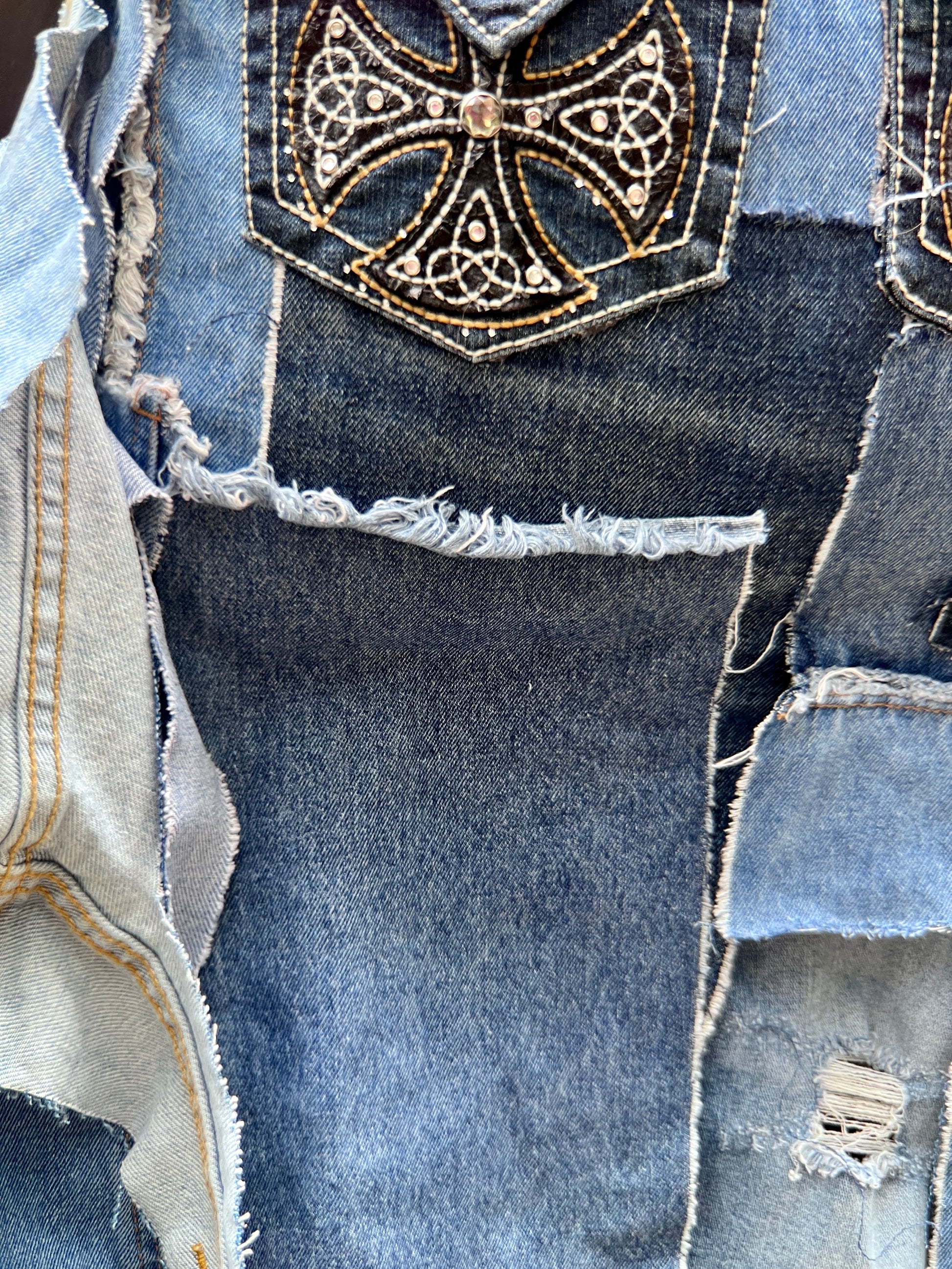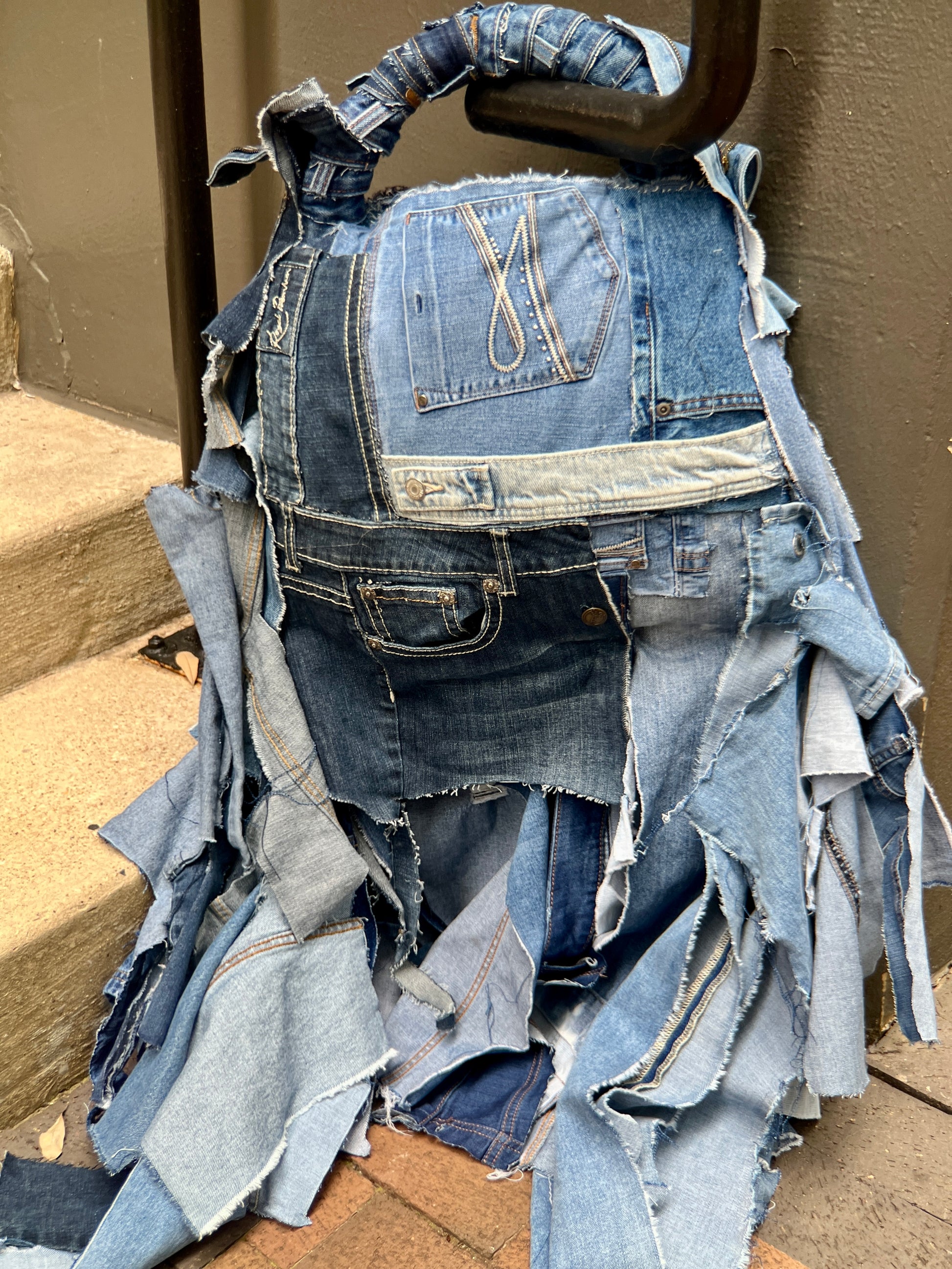 Funky Grunge Ugly Denim Bag Noticeably Funky. If being seen is your thing, this big ole' bag won't let you down. This is a true one-of-one kind of bag that is making a huge statement.