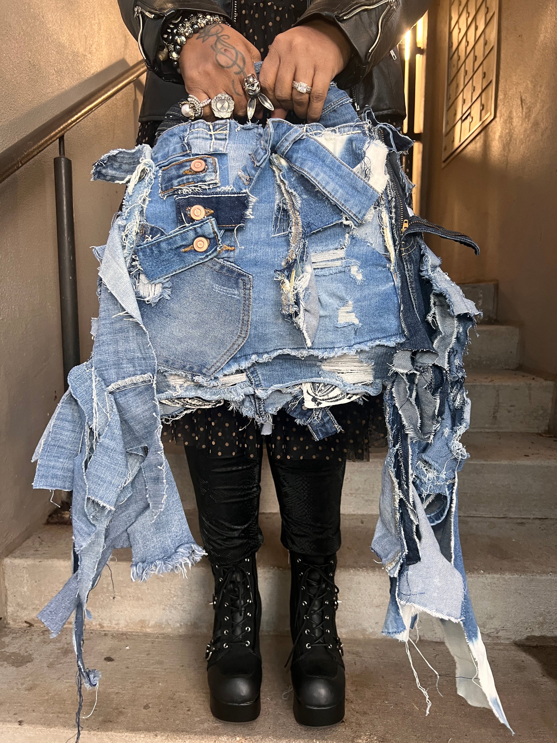 Everyday Ready To Be Seen Ugly Denim Stuff And Go, Bag, Noticeably Funky. If being seen is your thing, this big ole' bag won't let you down. This is a true one-of-one kind of bag that is making a huge statement.