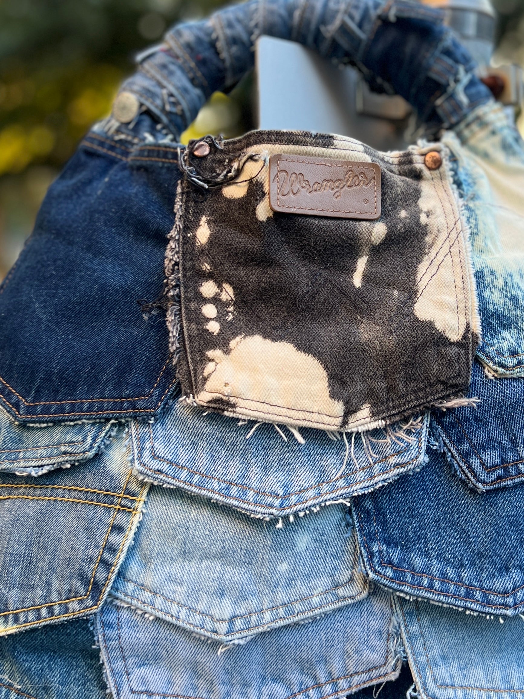 Spotted Black Pockets Denim Grunge Ugly Bag. It's funky grungy, unique, and one-of-a-kind! No one will have this exact bag.