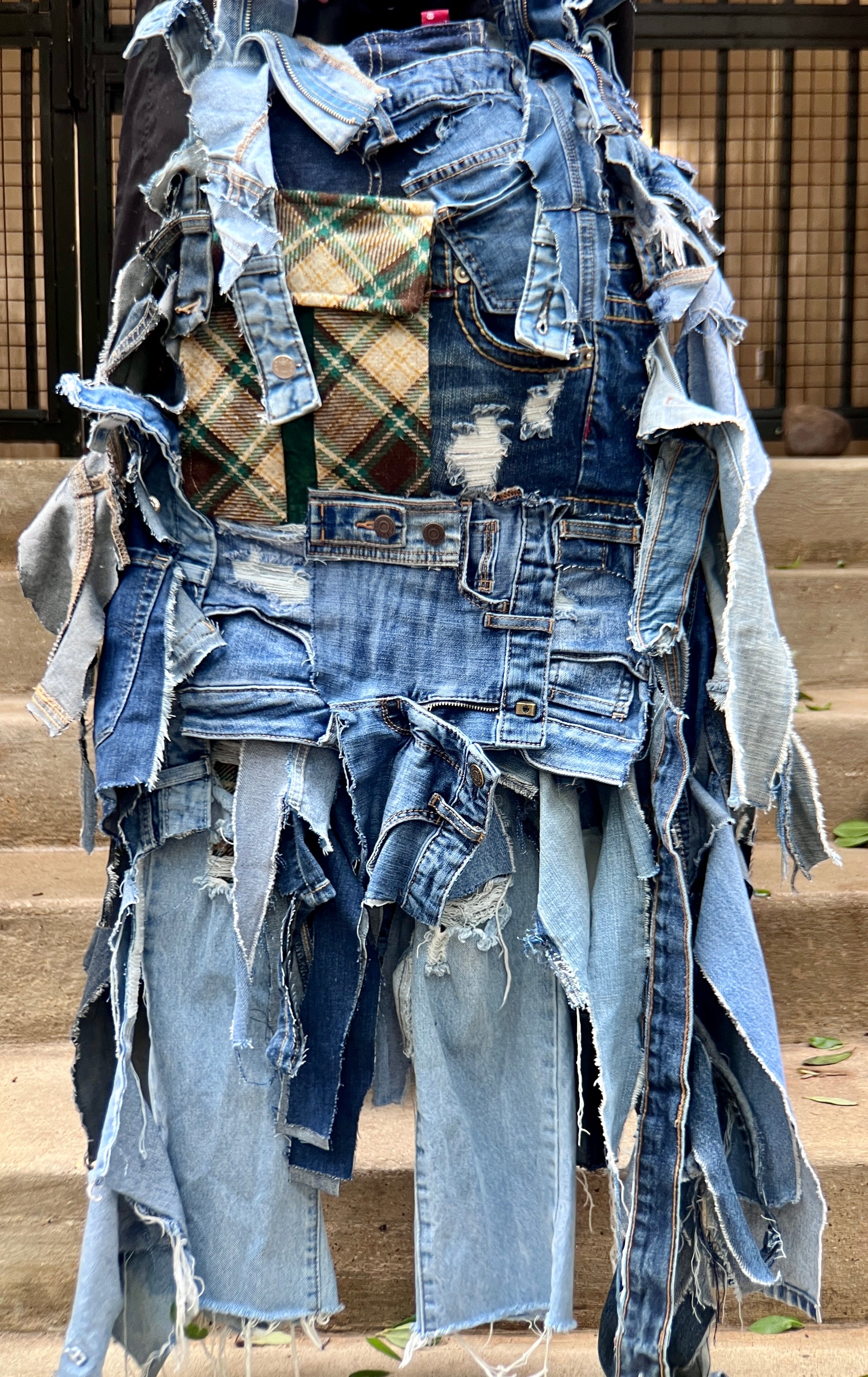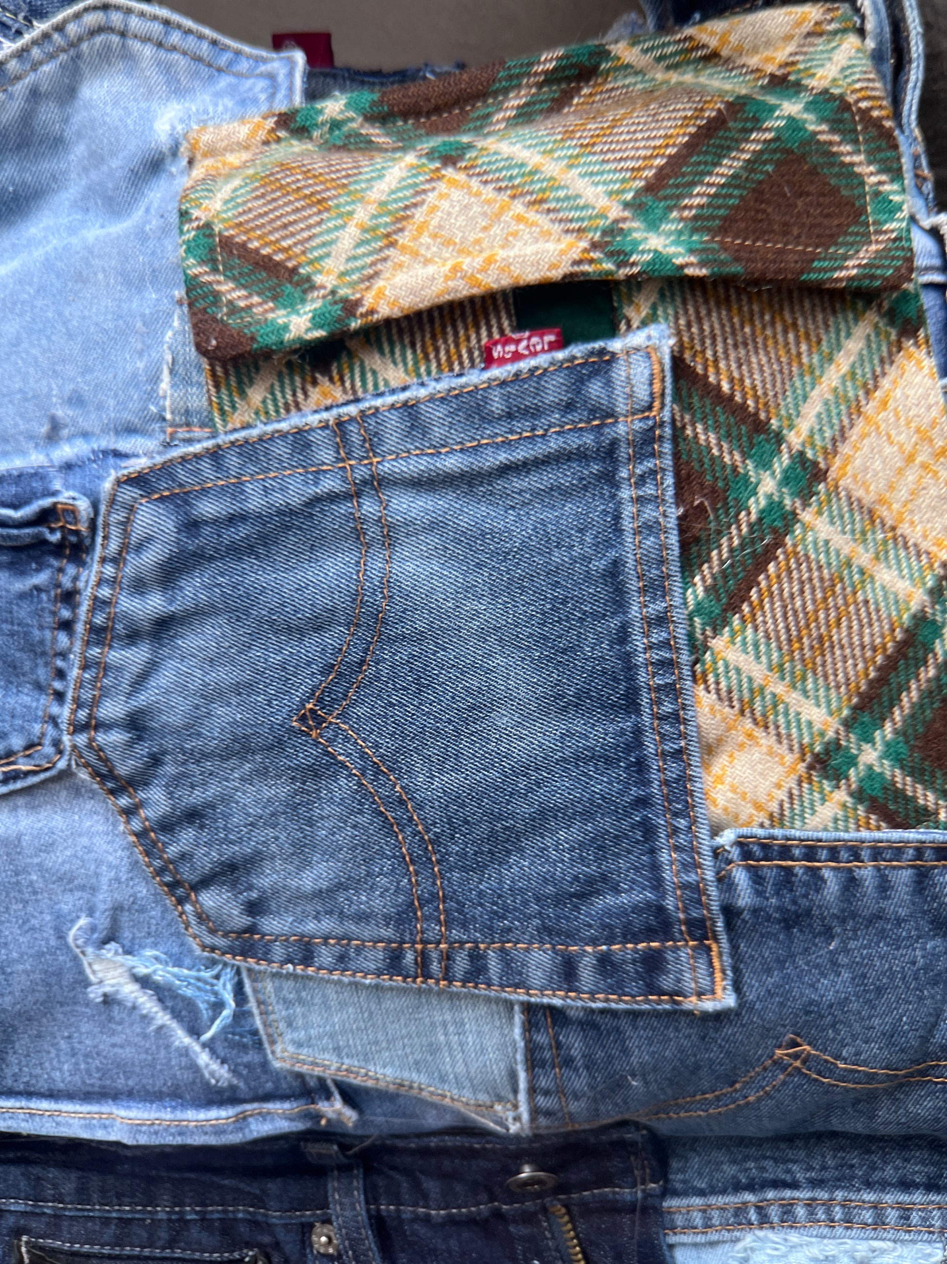 Ugly Grunge Plaid Never Before Handmade Denim Funky Bag XL! Unmatched Denim on Denim style. This bag is oddly unique, and NO ONE Will Have Your Design!