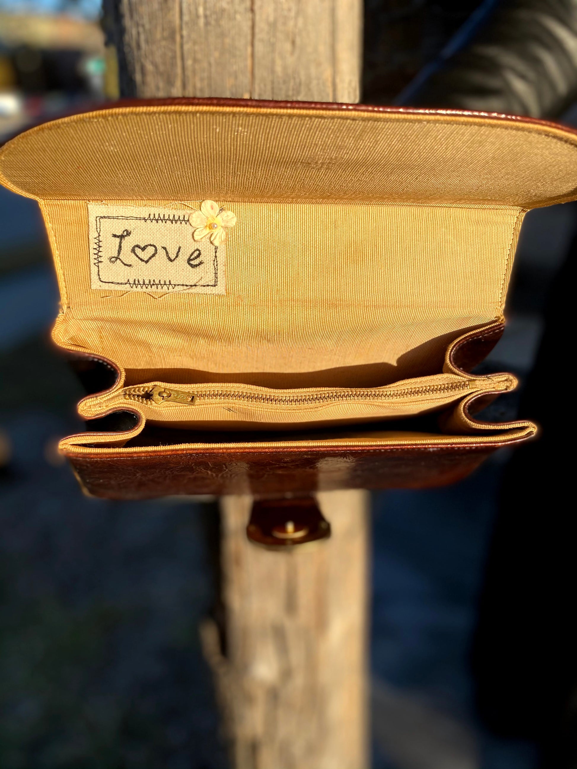 There is indeed something nostalgic about turning junk into funk. That is why it was a no-brainer reworking this brown leather worn out pre-loved purse. This re-worked victorian style doll mini bag is perfect for a girls' conversation over Starbucks coffee.
